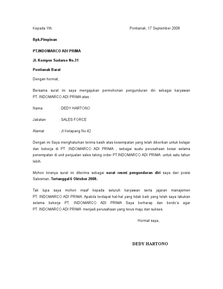 Contoh Surat Pengunduran Diri Sebagai Karyawan Indomaret Kurikulum Pendidikan1 Blogspot