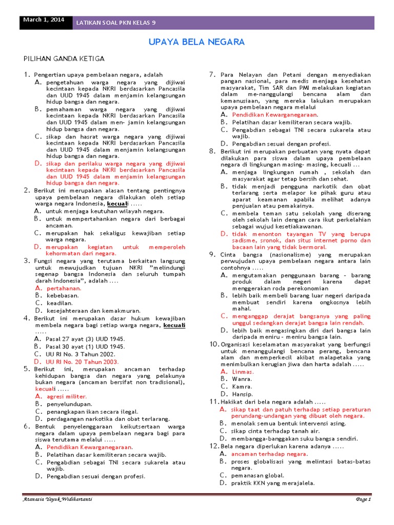 Soal Latihan Jawaban Upaya Bela Negara Part 2 Pdf